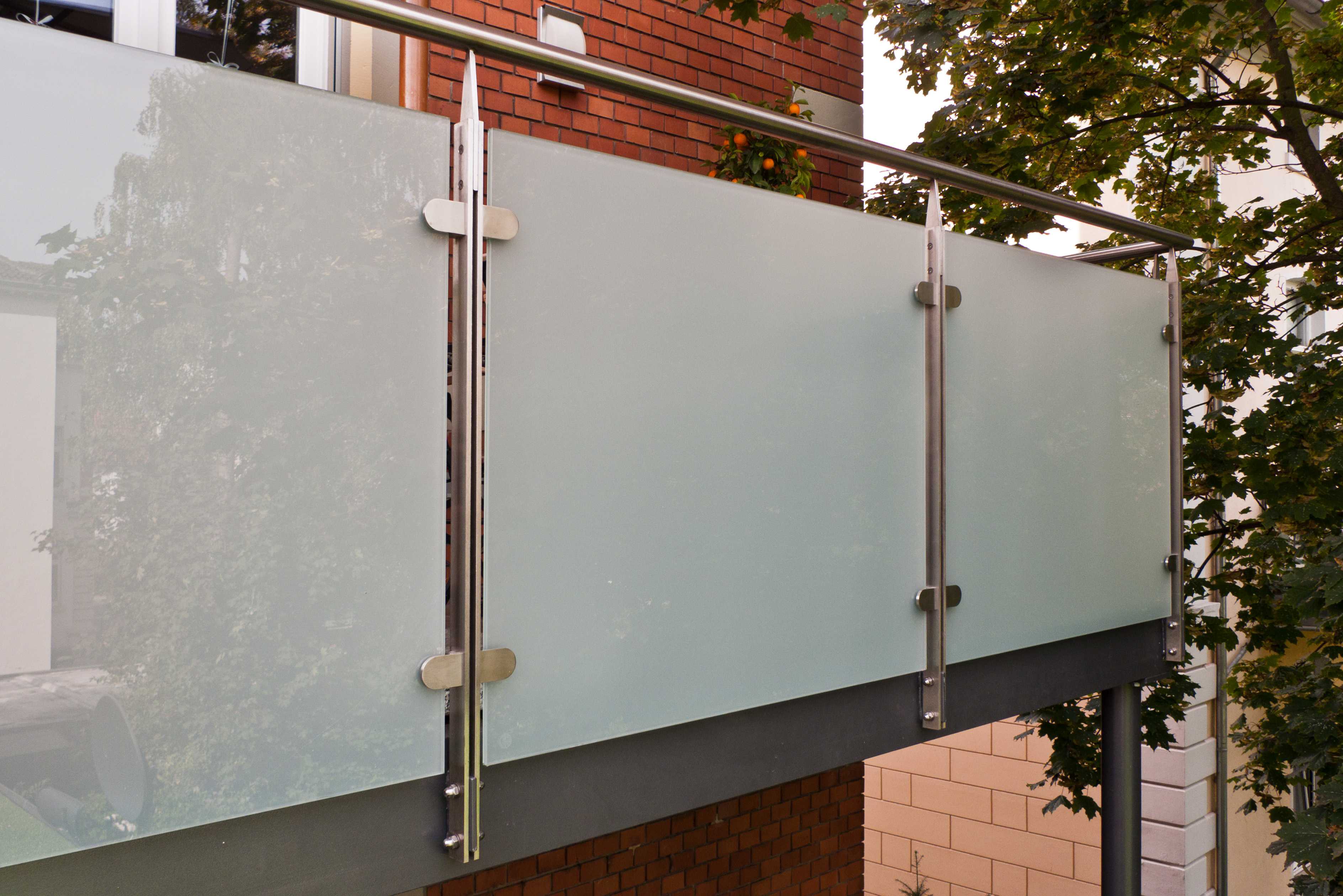 Balkongeländer Balkongeländer aus Stahl, feuerverzinkt, pulverbeschichtet und Edelstahl. Füllung mit senkrechten oder waagerechten Stäben, Sicherheitsglas, Kunststoffverbundplatten oder Lochblechen.