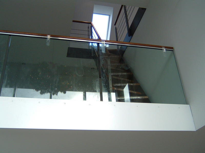 Geländer Geländer für den Innen- und Außenbereich aus Stahl und Edelstahl, kombiniert mit Holz. Individuelle Lösungen mit Füllungen aus Sicherheitsglas, Stäben, Drahtseilen oder Zierstäben.